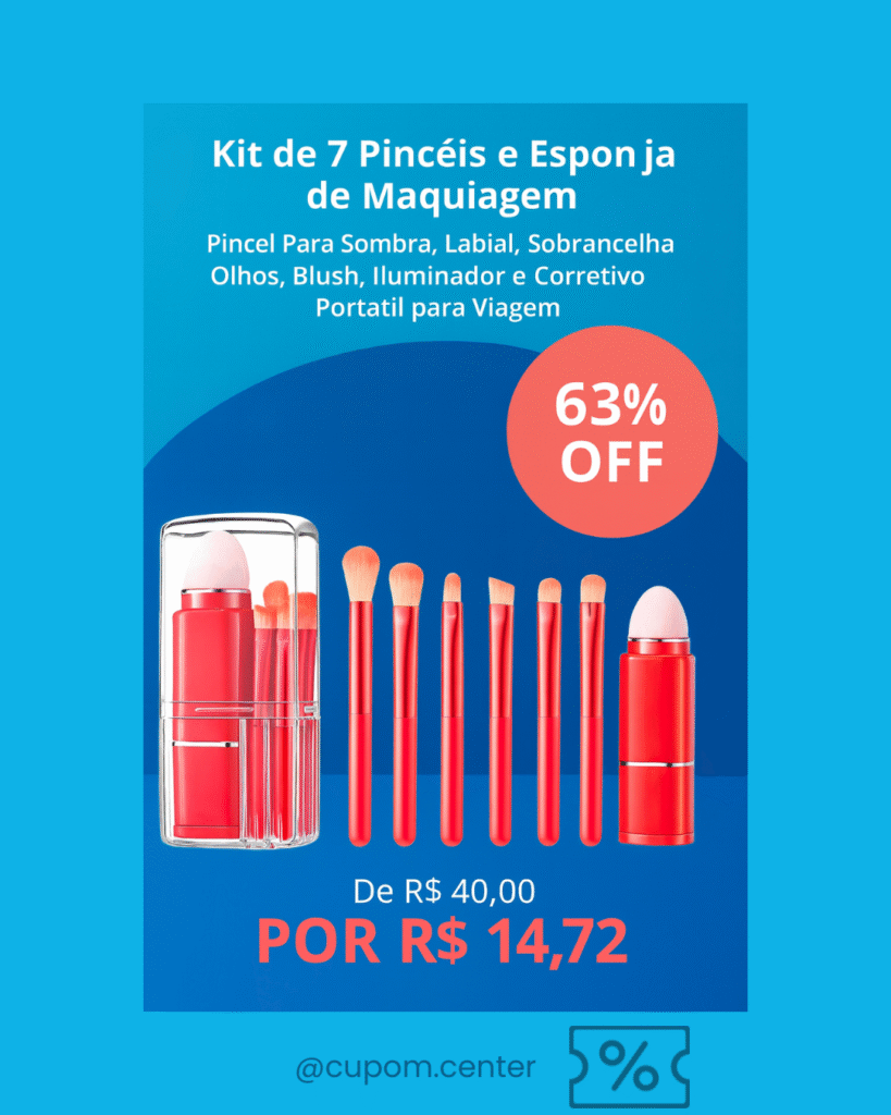 Kit de 7 Pinceis e Esponja de Maquiagem