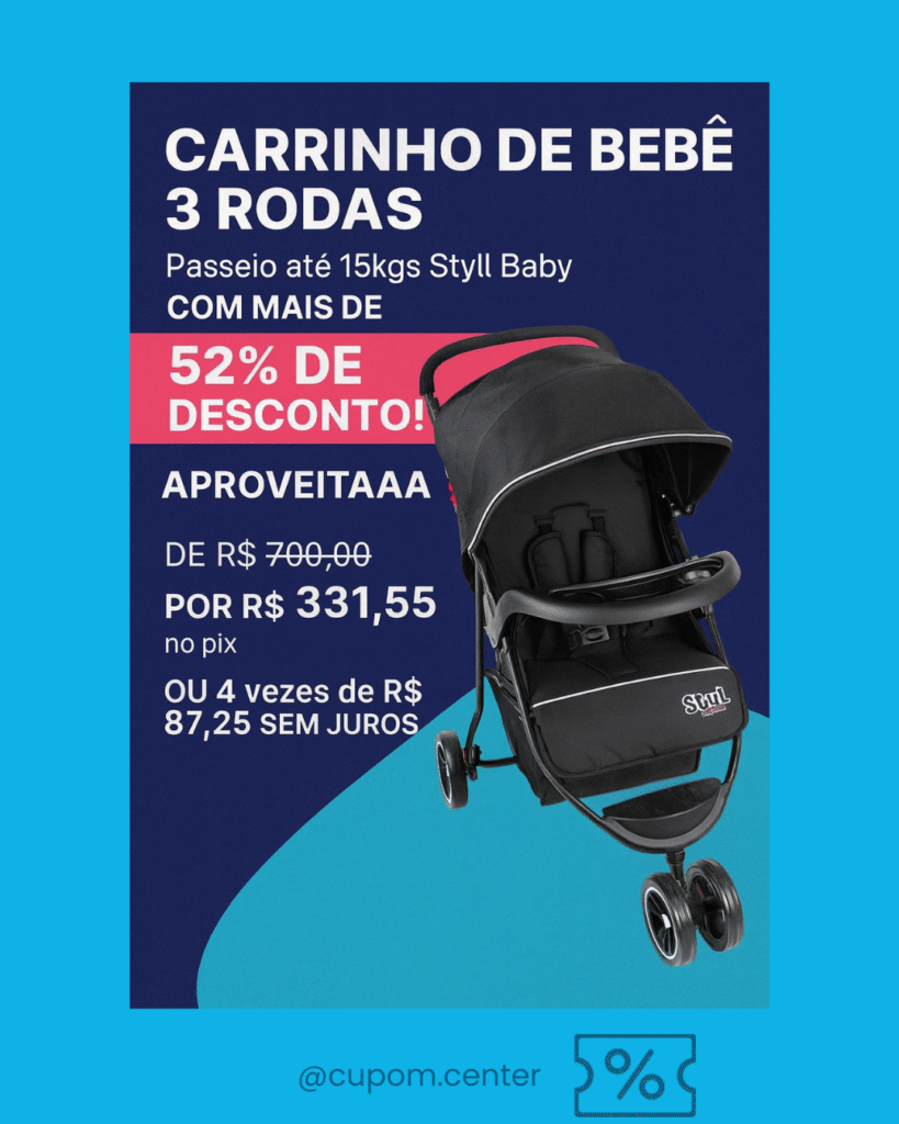 Carrinho De Bebê 3 Rodas Passeio até 15kgs