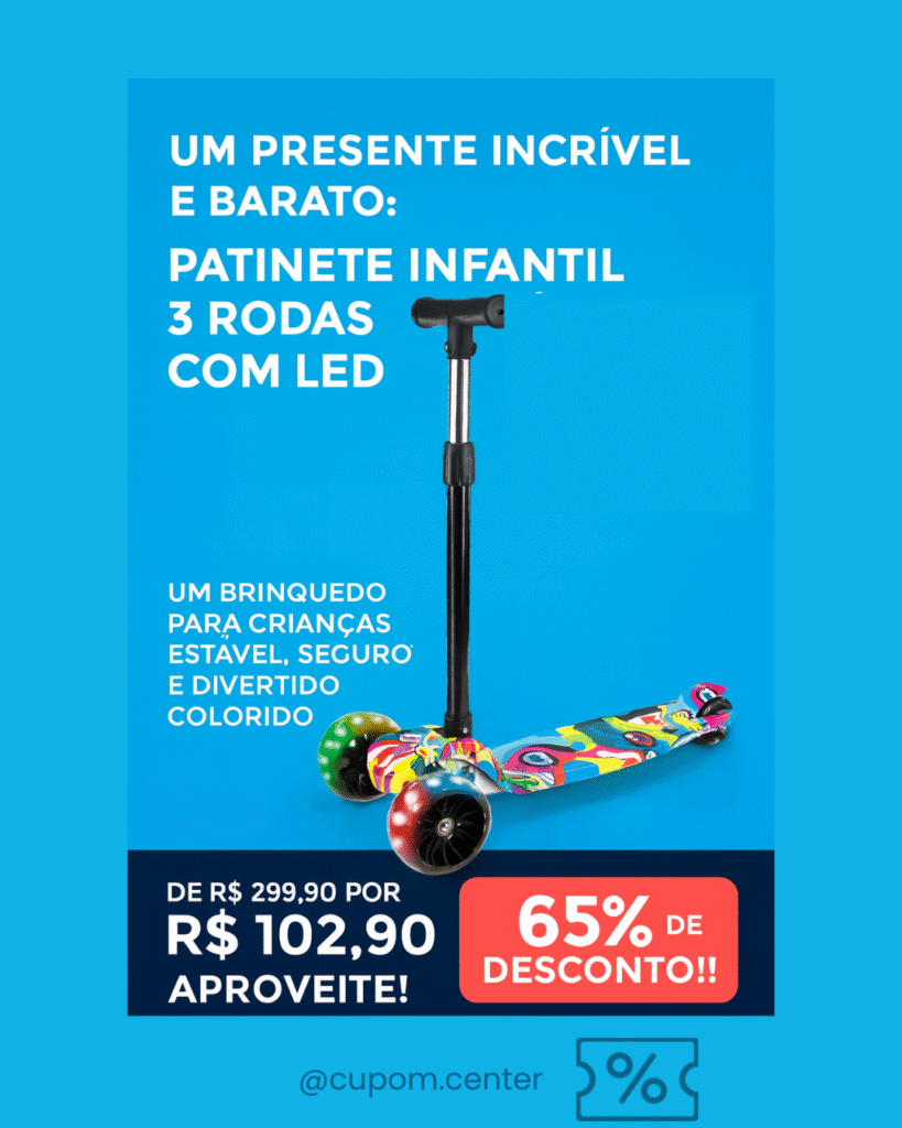 Patinete Infantil 3 Rodas Dobrável Com Led